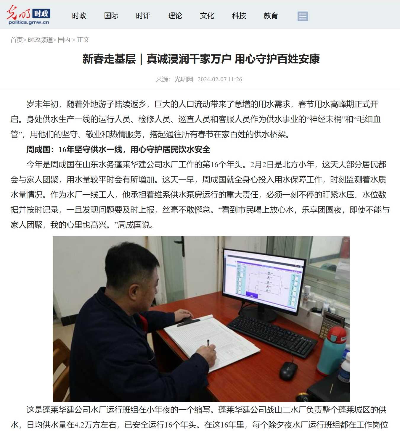 周成国:16年坚守供水一线 用心守护居民饮水宁静