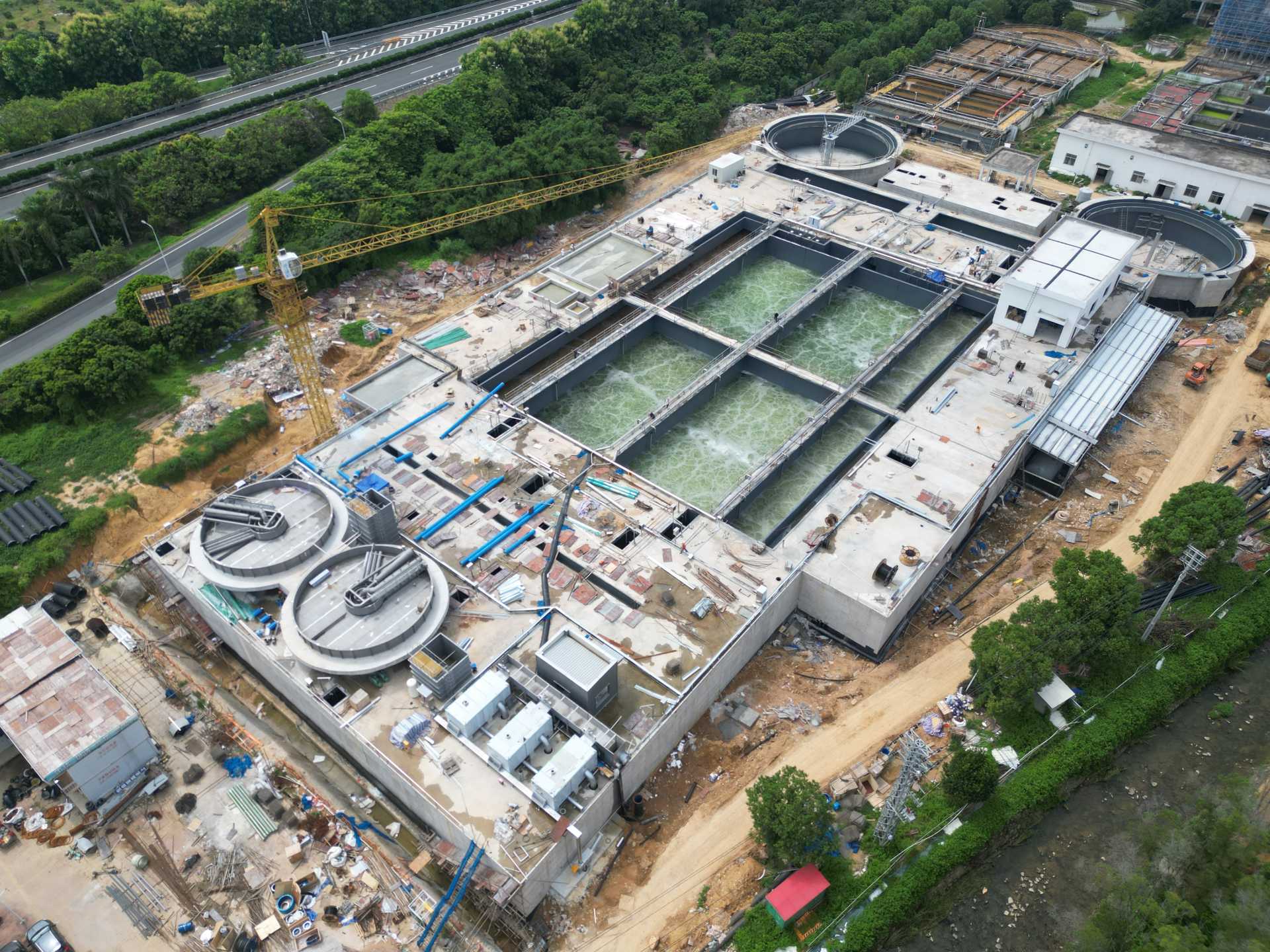 项目于2023年4月8日正式开工建设以来,全体参建人员坚定信心,紧盯“宁静、质量、进度”三座大山,通过优化施工要领及技术步伐,解决了施工工期紧、园地作颐魅窄、施工种类多、组织协调难等一系列问题,跑出项目建设“加速度”,仅用84天时间完成了组合池主体结构施工,50天完成池体清理、设备管路装置,并提前完成组合池设备单机联动调试,于今日正式进水负荷调试。