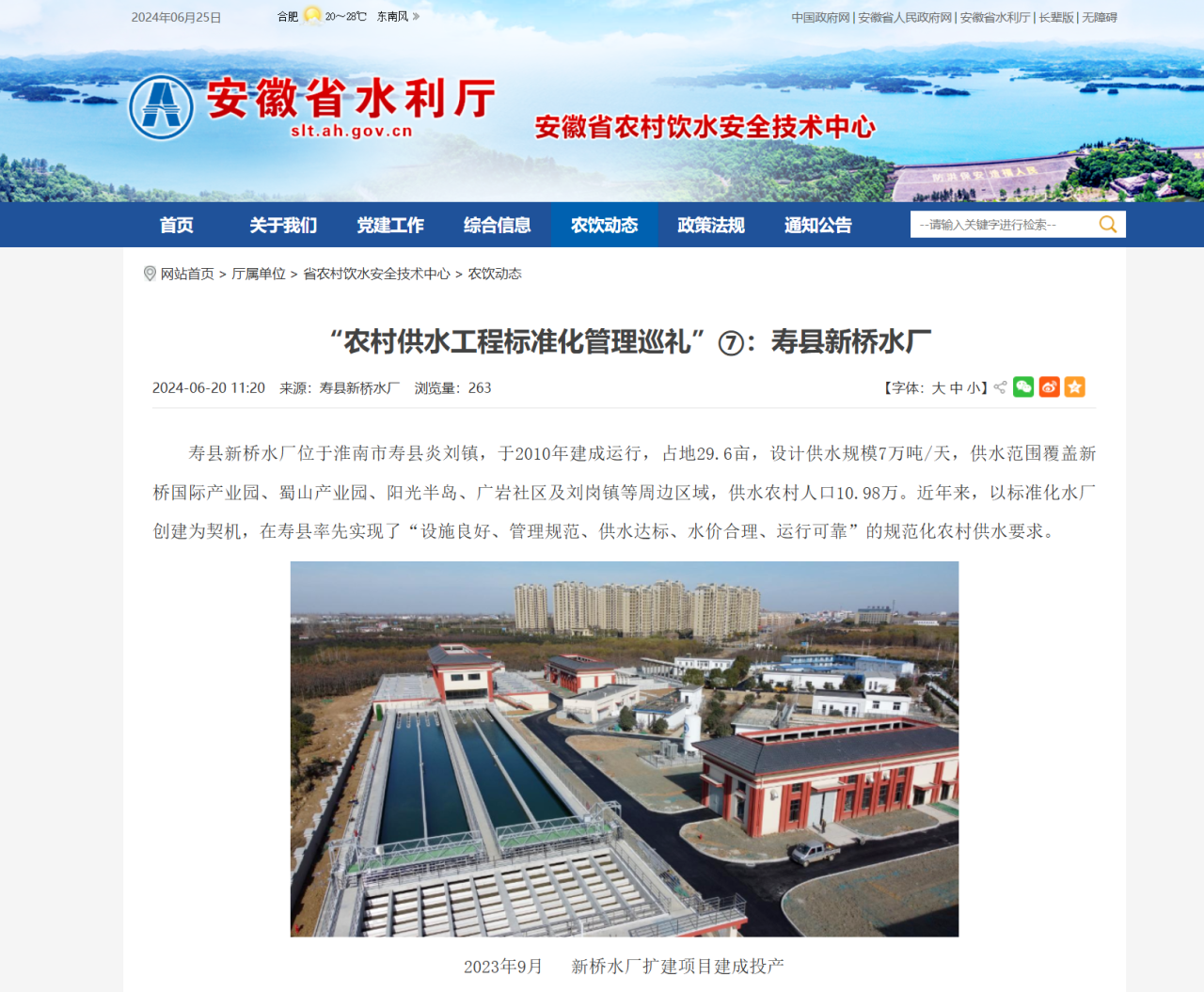 近日,安徽省水利厅以《“农村供水工程标准化治理巡礼”⑦:寿县新桥水厂》为题报道中国佰利乐华东区域总部中皖佰利乐新桥水厂农村供水工程标准化治理情况。